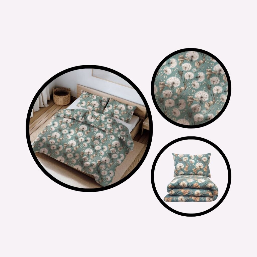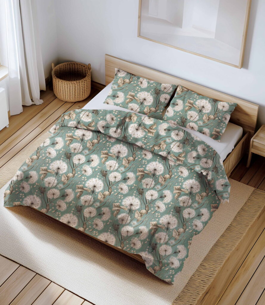 Pościel bawełniana zielony, wzór dmuchawce